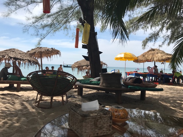 Otres Beach, for the moment, is a quiet place. A lot like Koh Samui was 20 odd years ago. Bars, basic huts on the beach and one or two places with nicer bungalows in and around the hostels across the small dusty road. Most places are thatch and one storey.