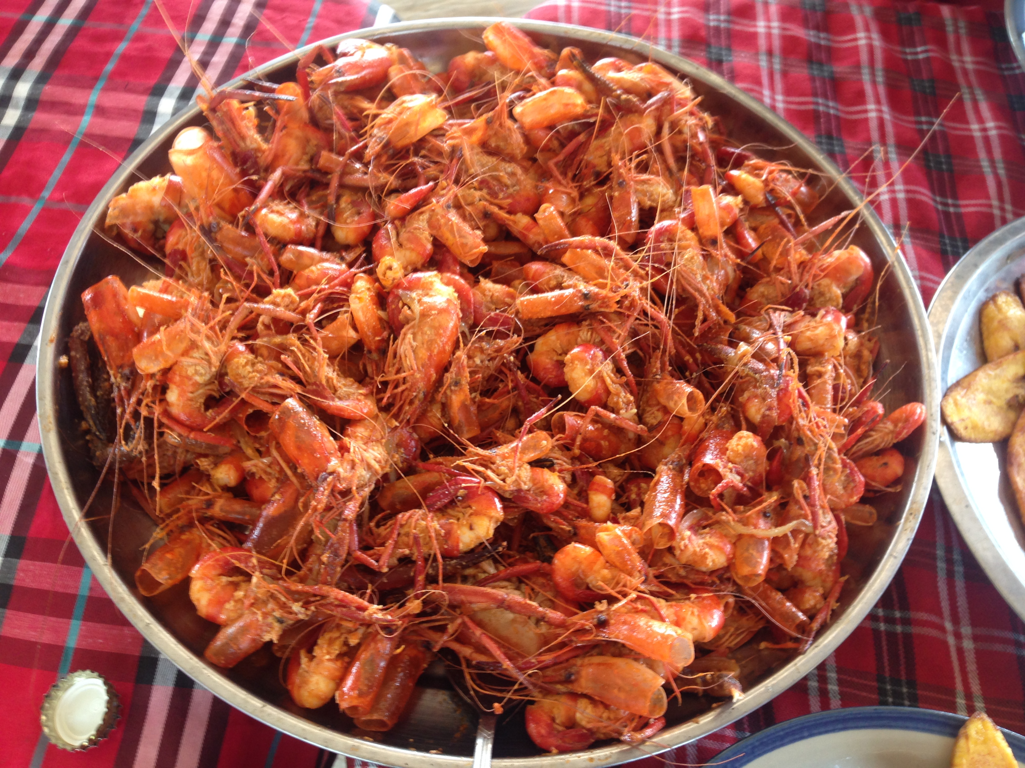 Then a trip to the base of a stunning waterfall that flows straight into the sea, and topped off the day with a monster platter of prawns and a cold one!