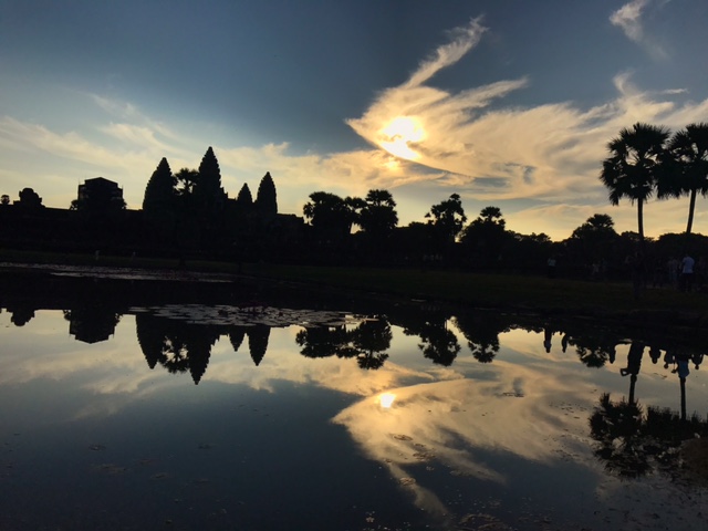 An early 4.30am start, to go buy my Angkor pass and be in place for the sunrise at Angkor Wat. I do love sunrises and try and see as many as I can. I love them because it is usually quiet and peaceful! Not the case at Angkor Wat!! I might as well have been on the London Tube at rush hour in the pitch black. Thousands of people head here to watch the sunrise and most want to be in front of the reflection pool – madness!
