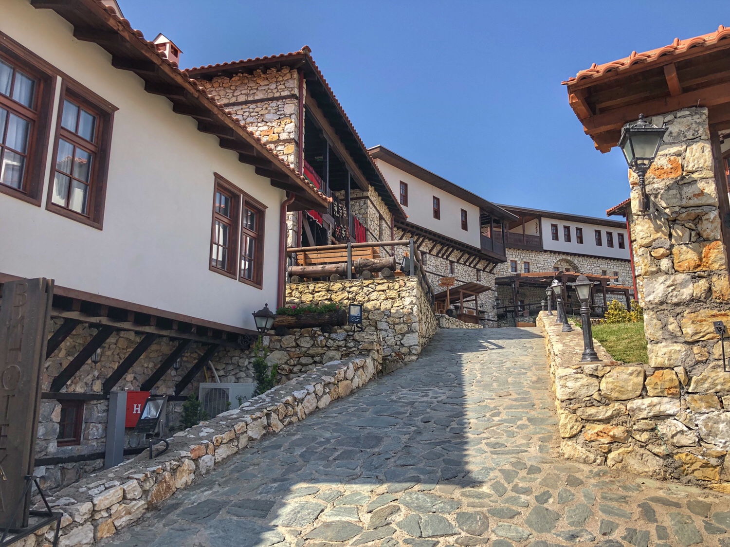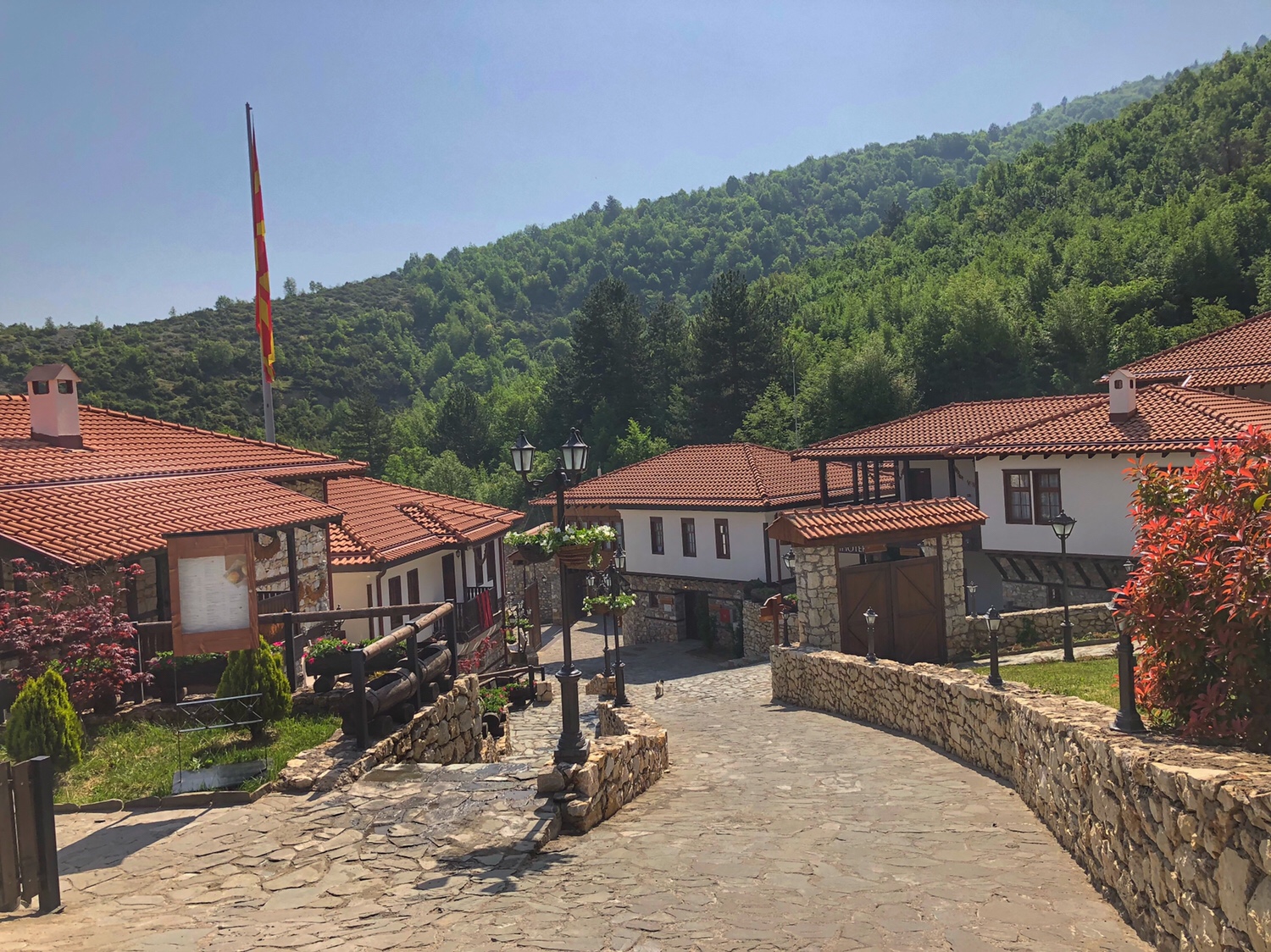 As soon as we entered Macedonia we started winding our way down the mountain (didn’t realise we were that high up in Bulgaria) narrow winding road following a fast flowing river down into the valley. Macedonia countryside on this side is a lot starker than Bulgaria, short stubby trees like the Cape.